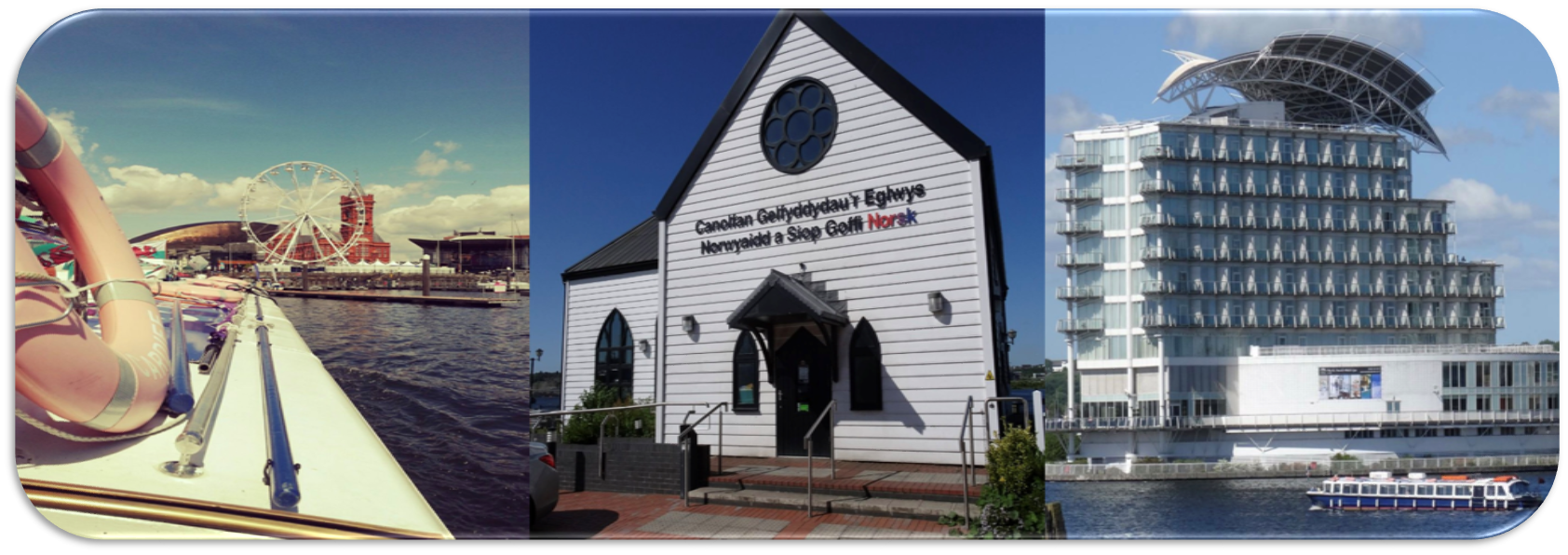 A large variety of bars and restaurants can be found along with other landmarks such as the Pier Head building with its' exhibition, the Wales Millennium Centre, Norwegian Church and Red Dragon Centre.