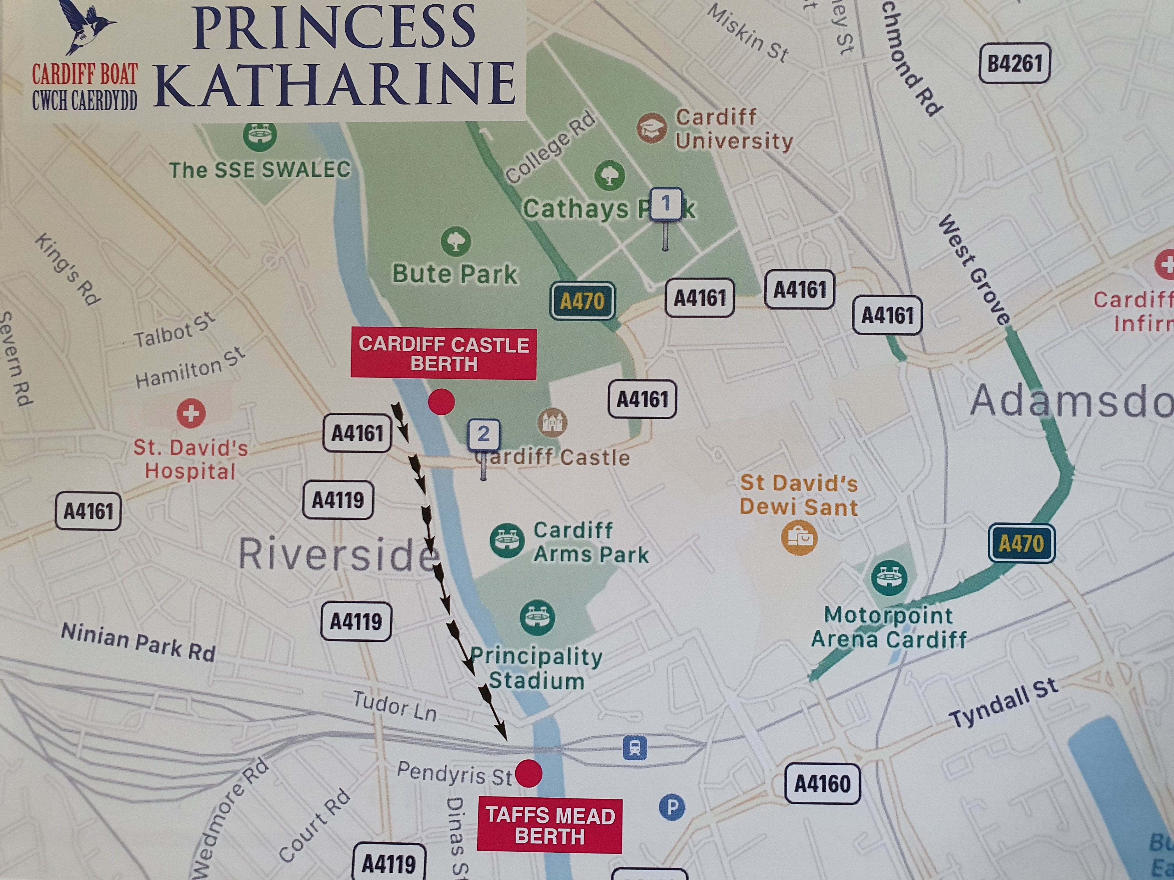 Saturday 21st February - Princess Katharine is running today - **half past the hour from Taffs Mead Embankment CF11 6RG see map below** and on the hour from the lower boardwalk in Cardiff Bay CF10 4PZ